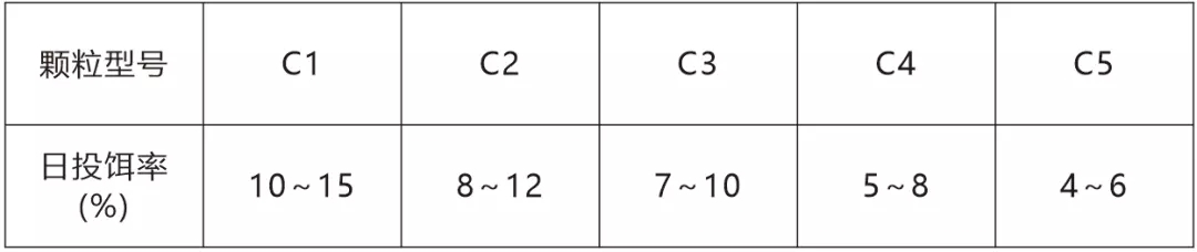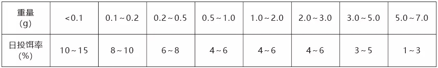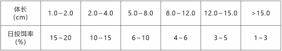 注:具體投喂量根據(jù)溫度、水質(zhì)和攝食情況適時(shí)調(diào)整。