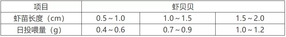 3、本表投喂量根據天氣、水溫、水質、蝦苗健康狀況及攝食情況來調整。